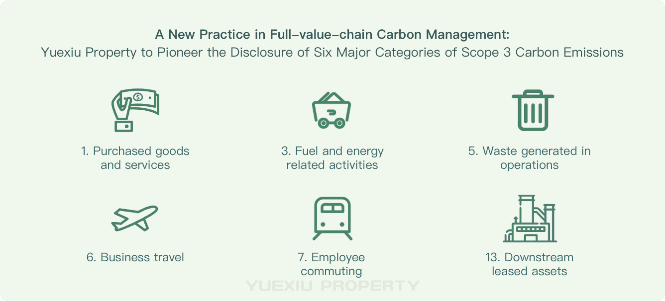 As the national Dual Carbon strategy advances steadily, green and low-carbon development has become a core competitiveness for the high-quality development of real estate enterprises. In 2025, Yuexiu Property fully initiated the sorting of Scope 3 greenhouse gas emission inventories, and will disclose emission data across six major categories in accordance with the GHG Protocol in the upcoming Yuexiu Property 2025 Sustainability Report, accelerating the establishment of a full-value-chain carbon emission management system. As a key initiative to actively align with national Dual Carbon goals and sustainable development strategies, this effort provides a data-driven foundation for evidence-based devarbonization strategies and comprehensive value-chain emission reduction management.